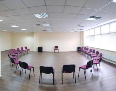 15 кв. м., подходит как для малых групп 6 - 10 чел, так и для индивидуальной работы;