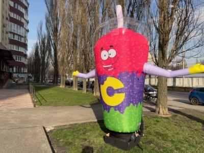 Методом сублимации красителя нанесем на рекламный объект Надувной стакан реклама
